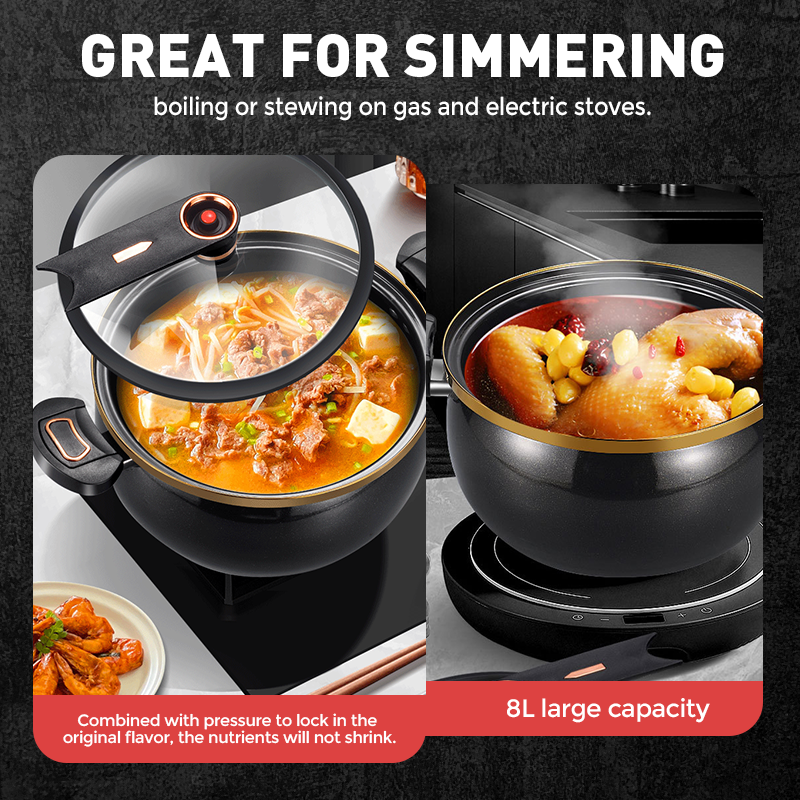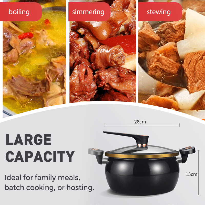 RYMLIG STOR KAPACITET: Denna gryta är designad för att hantera stora portioner enkelt och är idealisk för familjemåltider, middagsbjudningar eller veckans matprep.
